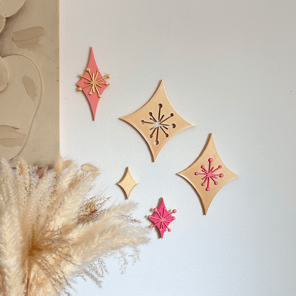 In my latest 3D printing adventure, I combined my love for midcentury design with the endless possibilities of 3D printing. The result? A collection of elegant, wall-mountable stars that bring a touch of vintage charm to any room. Each star features a small notch for easy hanging, making them perfect for adorning walls with screws or thumbtacks.